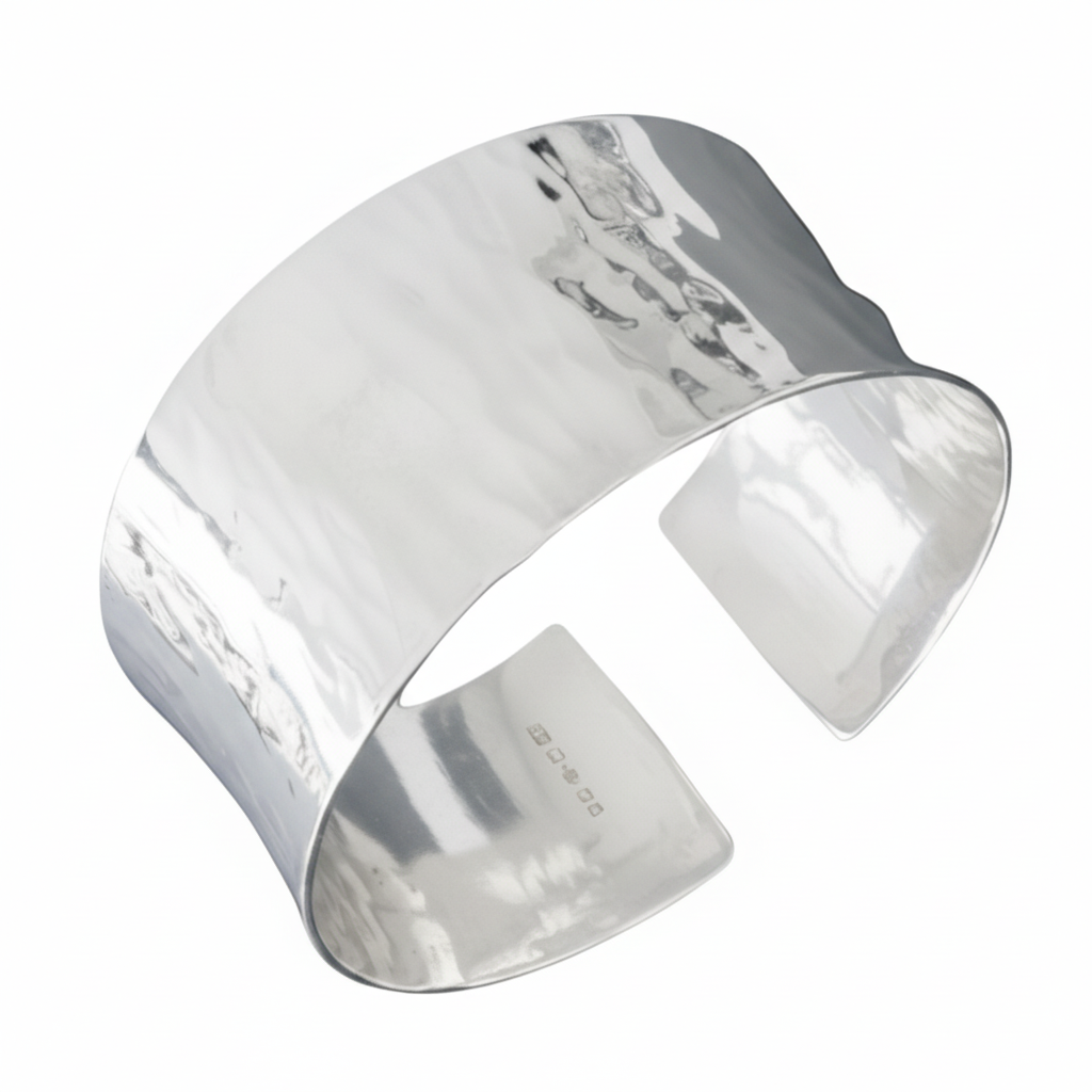 The Zebra Cuff is formed slowly by hand, with each hammer strike creating a long vertical distinctive pattern across the silver surface.