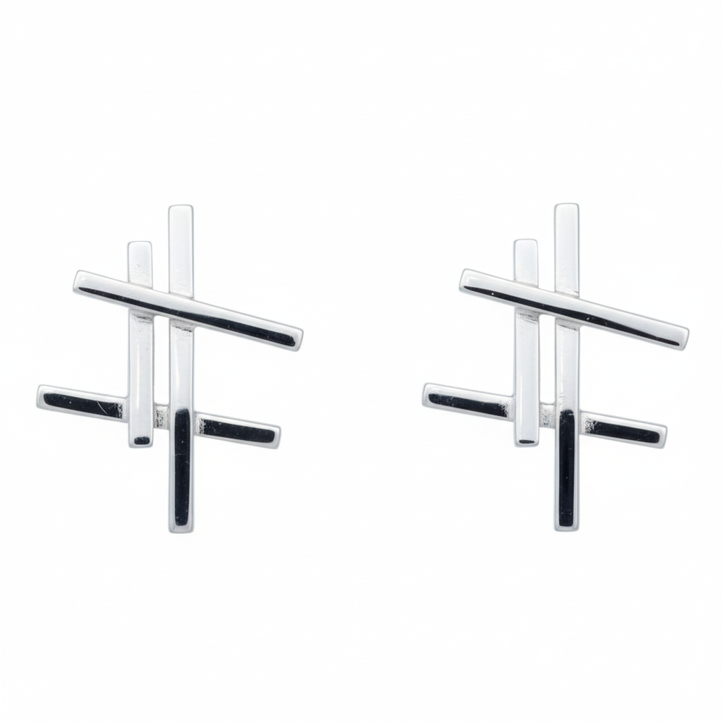 These striking earrings are handcrafted from individual sterling silver rods, each carefully cut and soldered by hand to create layered bar elements.